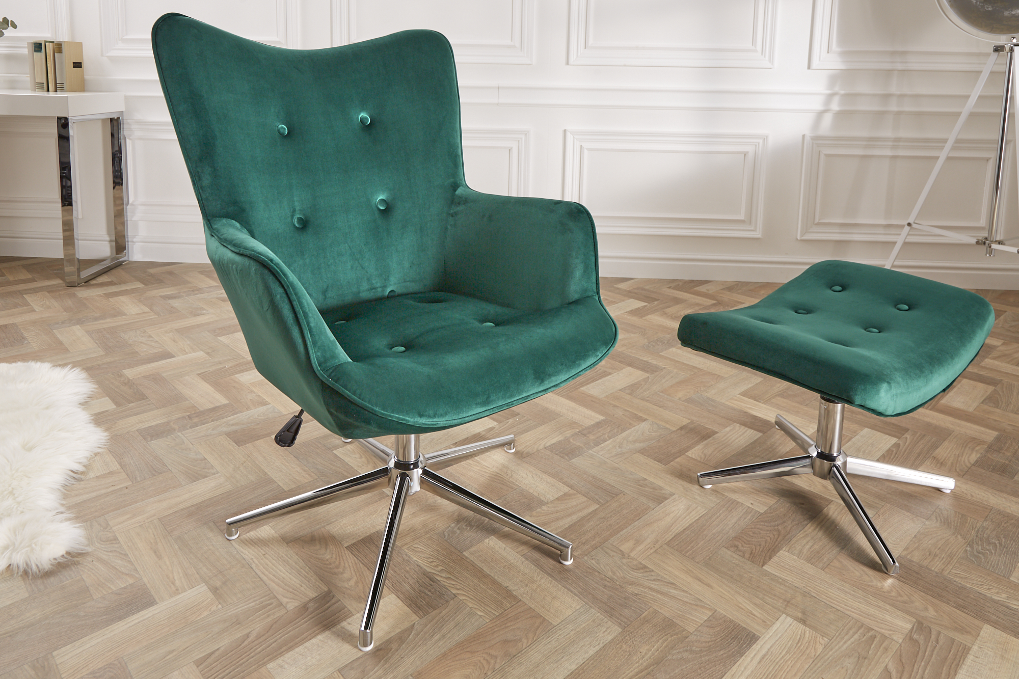 Designová sametová židle otočná zelená – Lorius IV